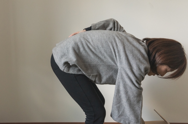前かがみ動作では腰の筋肉や椎間板に負担がかかるため、腰にトラブルがあると痛みが出ることがあります。